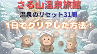さる山温泉旅館を最短1日で全条件達成!序盤は広告が多いものの、リセットで周回速度が劇的に向上。黄金猿を最大活用するコツ、高速周回テクニック、ながらプレイの秘訣を徹底解説。ポイ活の単価が見合えば、短期集中で一気に駆け抜けよう!
