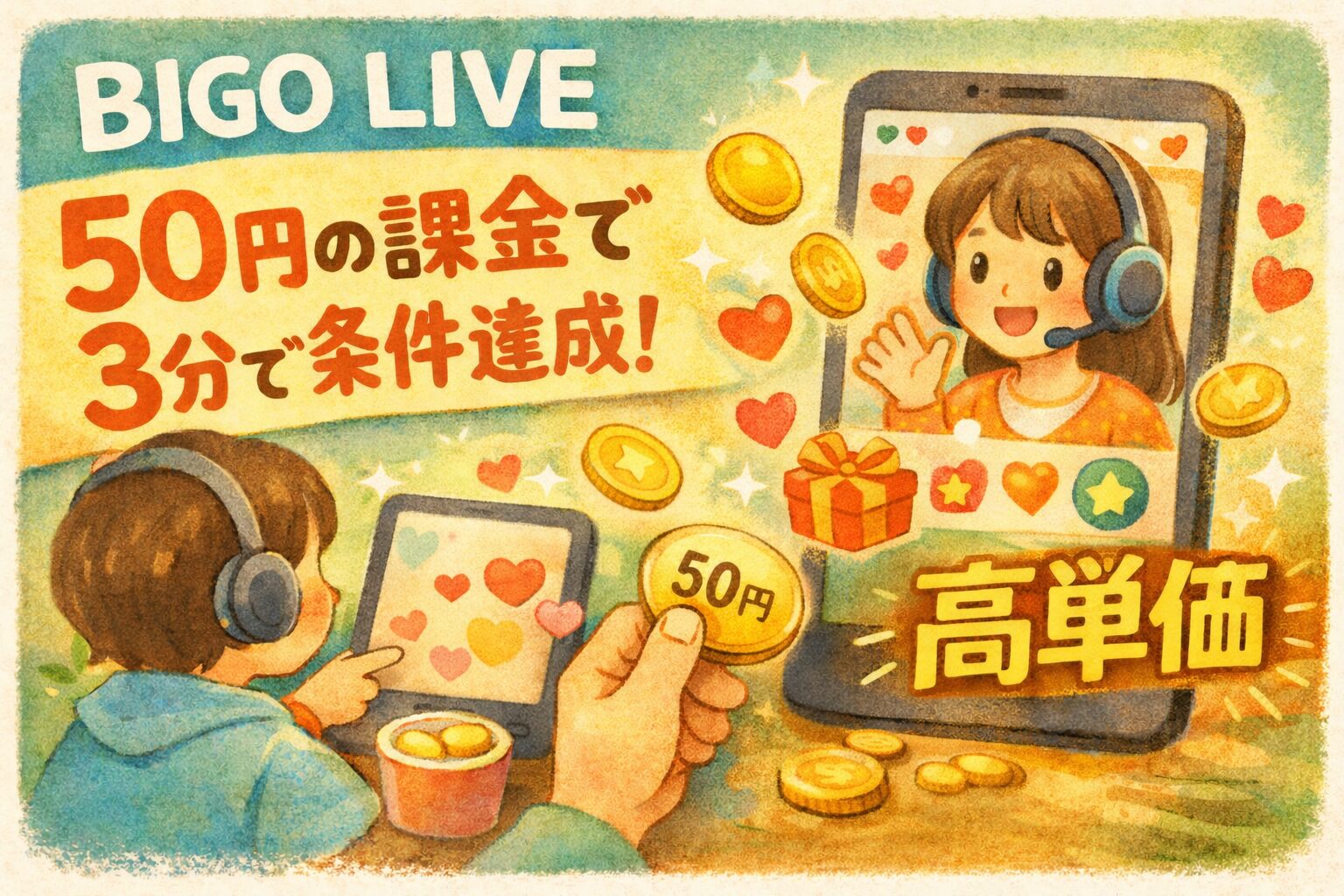 文句の付けようがない神案件です。ただし、ビゴライブを神案件化するには「50円」の課金が必要となります。