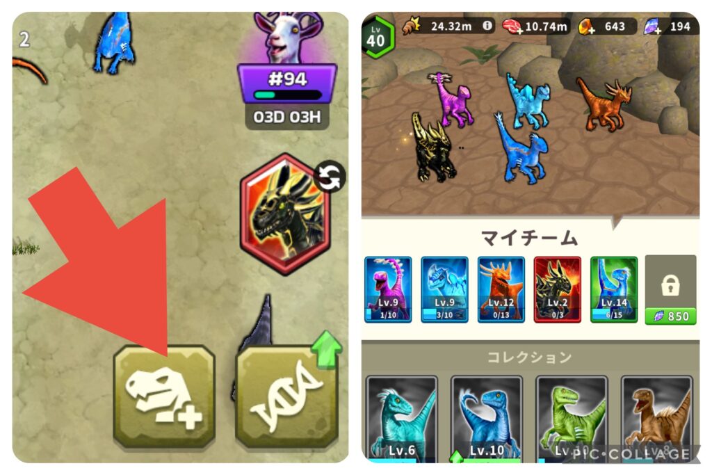 - 味方恐竜は「ガチャか卵の孵化で入手」が可能
