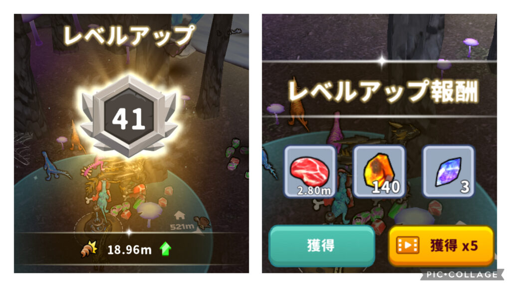 恐竜の世界で表示される広告の中には「視聴時間が無駄なだけ」の広告も多く存在しますが、レベルアップ時の広告視聴は間違いなく「時短」に繋がるので必見です。