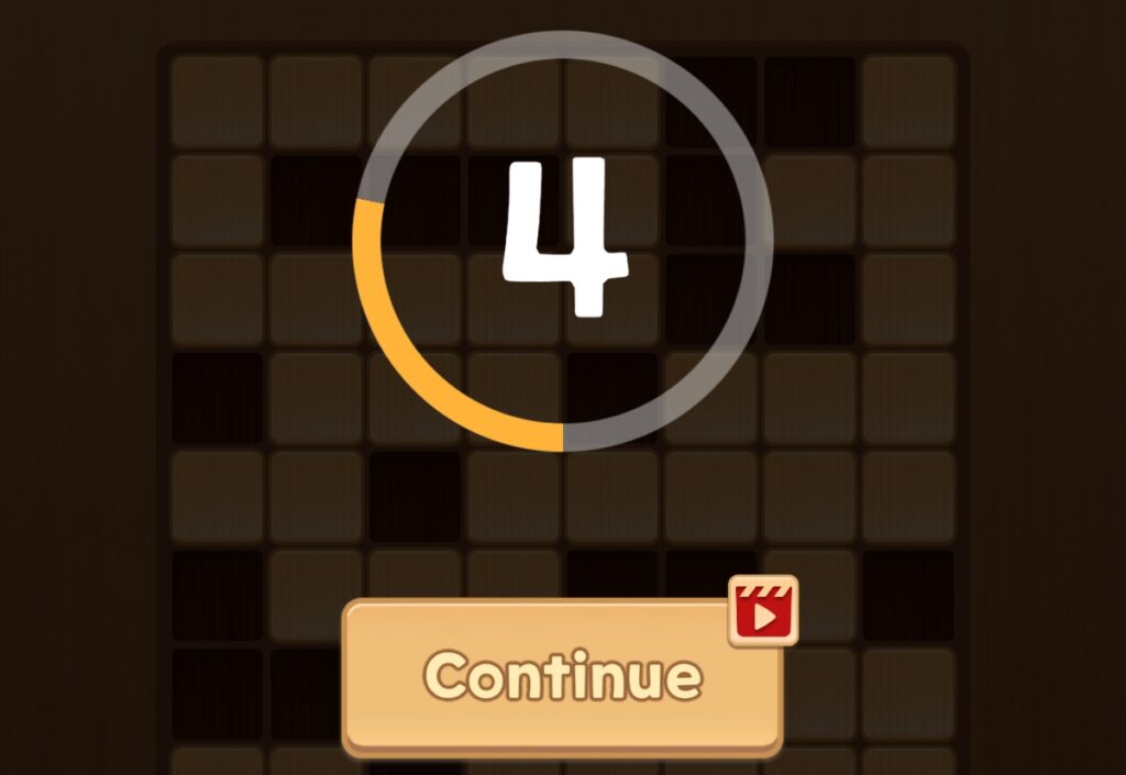 ギシギシマッチパズルは、ゲームオーバー後「5秒以内」にコンティニューボタンを押すと、広告が再生されて点数を引き継いでのコンティニューが可能です。