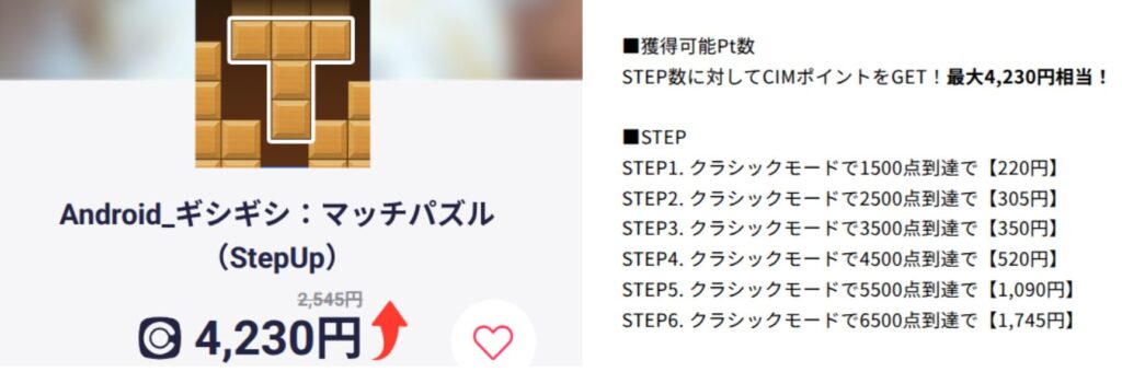 『ギシギシマッチパズル』の3,500点は、正しい知識を持って挑めば、非常にタイパの良い優良案件です。