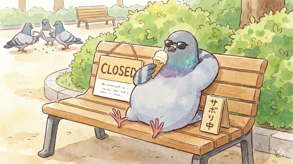 チュートリアルでは「画面をタップ・スワイプしてのエサやり」を促されますが、ハトはエサをやらずとも成長して郵便局に入っていきます。